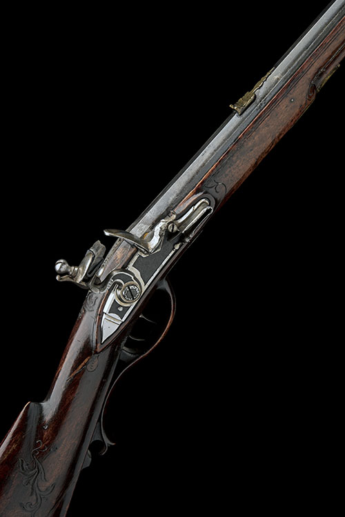 AN EARLY CONTINENTAL 28-BORE FLINTLOCK SPORTING-RIFLE, UNSIGNED, rack number 38,