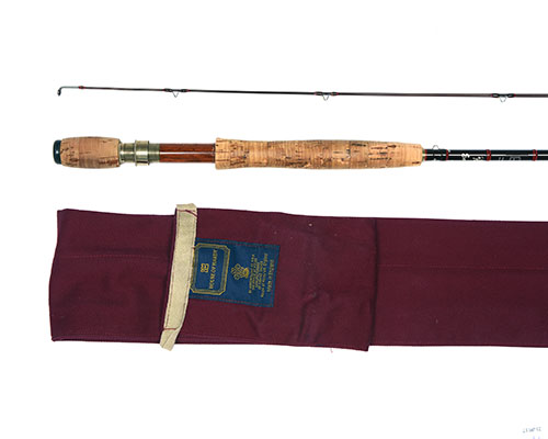 with whipped chestnut silk with red tips, wooden reel seat, original makers bag