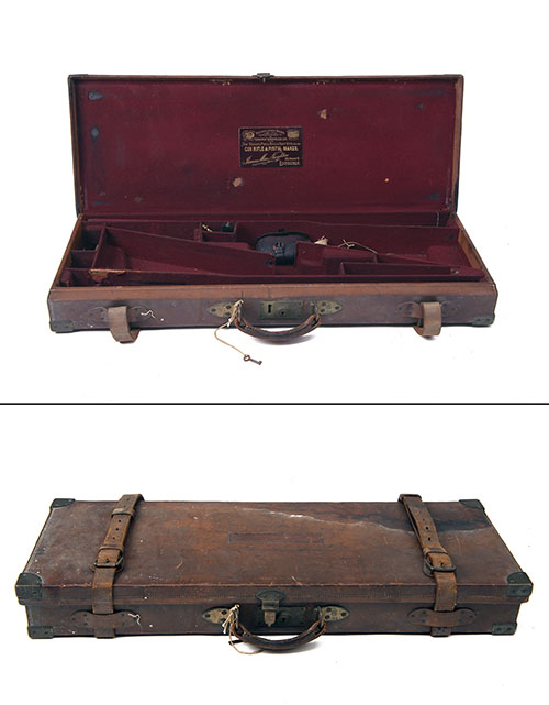 JAMES MACNAUGHTON A BRASS-CORNERED LEATHER DOUBLE GUNCASE,