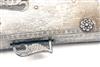 circa 1840, with twist iron 42in. barrel, fluted flaring muzzle, triple-ridged central carved sighting rib stopping short of breech, bead fore-sight, notch rear-sight, angular trapezoid full-stock, both sides covered with sheets of white-metal with engraved borders, further white-metal plates to underside of fore-end, sides of butt and heel, pierced trigger blade, chained pricker, embossed bosses to the white-metal barrel-bands and carved iron ramrod