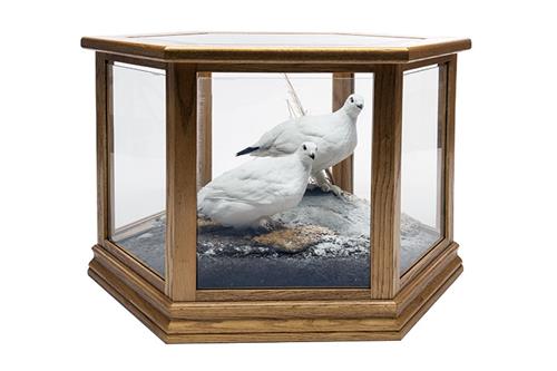 A FINE BRACE OF FULL-MOUNTED PTARMIGAN,
