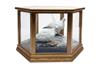 attractively set within a hexagonal oak and glass coffee table, measuring approx, 28in. x 32in. x 21in.