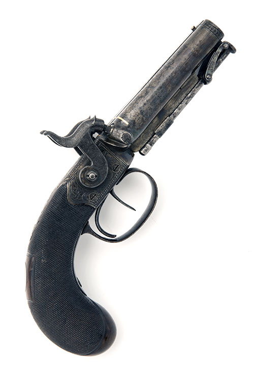 TOWL, BOSTON A GOOD 60-BORE PERCUSSION DOUBLE-BARRELLED TRAVELLING PISTOL, no visible serial number,