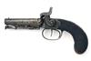 A GOOD 60-BORE PERCUSSION DOUBLE-BARRELLED TRAVELLING PISTOL, no visible serial number,