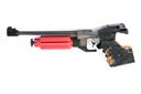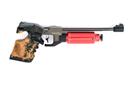 with a 10in. barrel open adjustable sights aluminium frame and triggerguard adjustable target trigger with an ergonomic hand carved wooden pistol grip with some accessories. Not tested.
