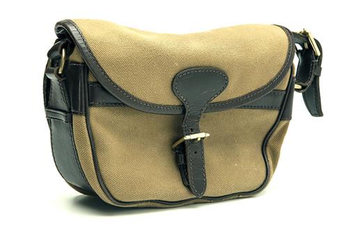 A CANVAS AND LEATHER SUEDE-LINED CARTRIDGE BAG,