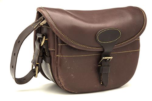 RAY WARD GUNSMITHS A LEATHER SUEDE-LINED MEDIUM CARTRIDGE BAG,