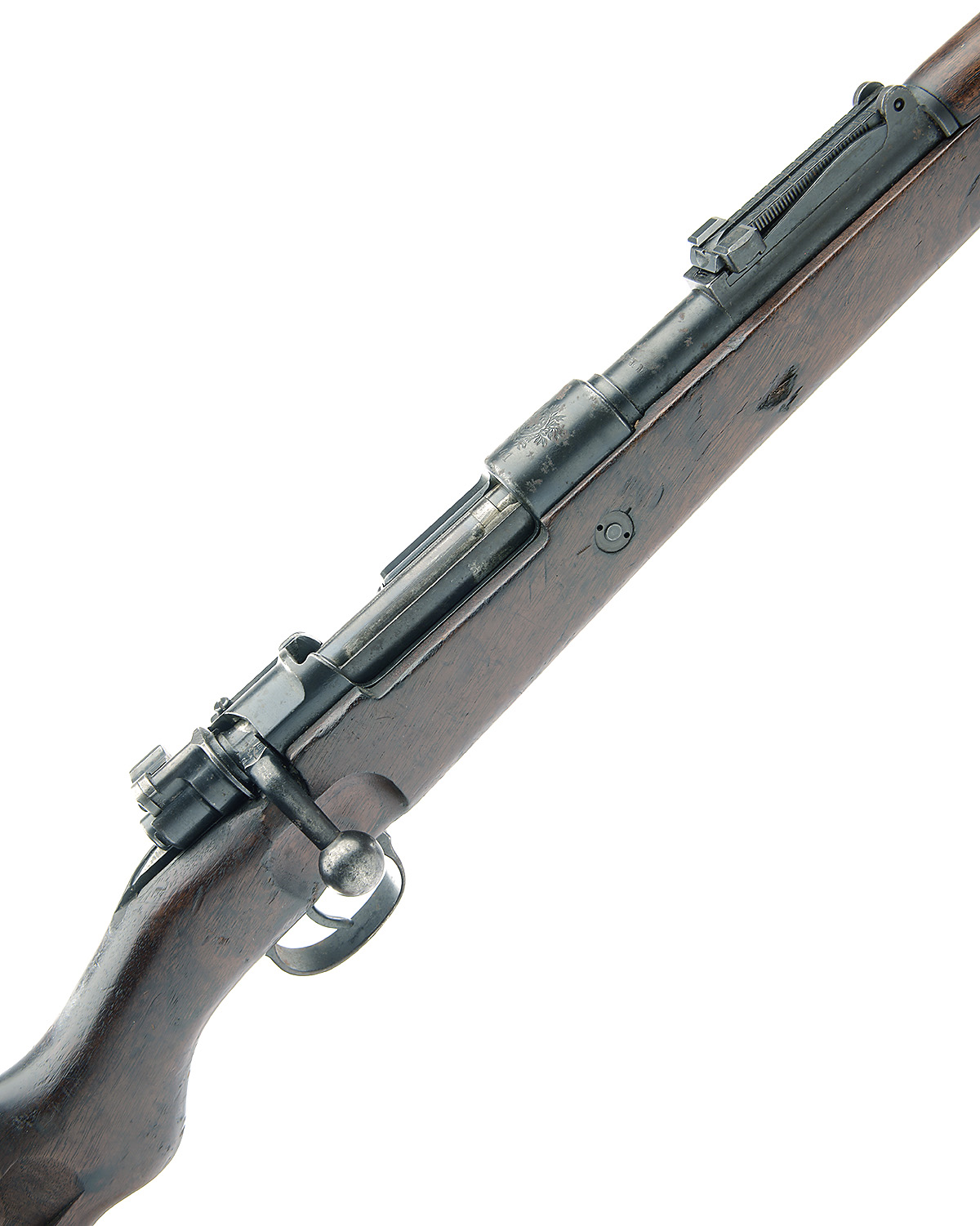 MAUSER 8x57mm IS 'MODEL 98' BOLT-MAGAZINE SERVICE CARBINE, serial no. H18713, 23 1/2in. nitro re-proved barrel, ramp-mounted fore-sight, tangent rear-sight, manual flag safety, receiver ring with portuguese crest and dated 1941, left side action marked 'MAUSER-WERKE A.G. OB