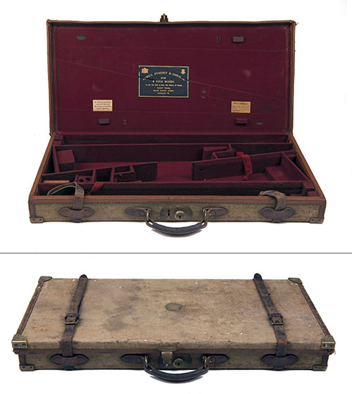 JAMES PURDEY & SONS A BRASS-CORNERED CANVAS AND LEATHER DOUBLE GUNCASE,