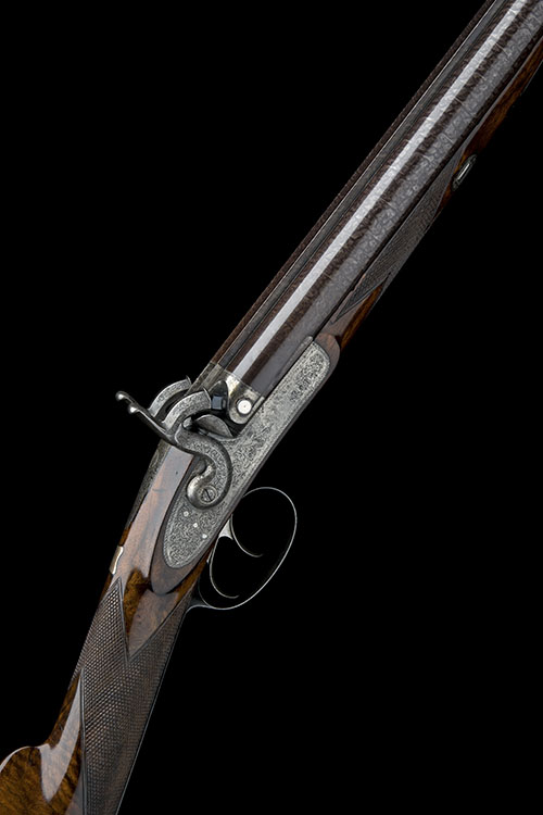 A FINE CASED 12-BORE PERCUSSION DOUBLE-BARRELLED SPORTING-GUN, serial no. 485,