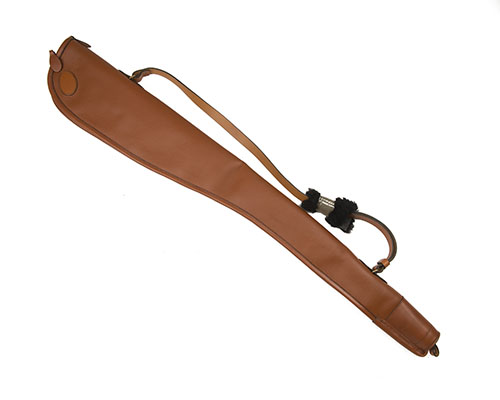 A FINE UNUSED TAN LEATHER FLEECE-LINED SINGLE GUNSLIP,