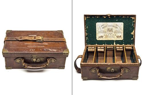 HARDY BROTHERS A BRASS-CORNERED LEATHER CARTRIDGE MAGAZINE,