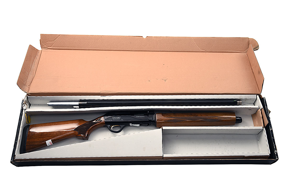 FOR SPARES ONLY HATSAN 12-BORE (89MM) 'ESCORT SUPREME MAX. SUPER MAGNUM' SEMI-AUTO SHOTGUN, serial no. 414650, restricted magazine, 28in. nitro barrel with 7mm ventilated matt rib, 89mm chamber, multichoke (no spares), manual push-button safety, magazine cut-off switch, plain black action, ACTION AT FAULT, 14 3/4in. pistolgrip stock including rubber recoil pad, weight 7lb. 12oz., in its makers carton