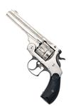 circa 1894, with nickel-plated 5in. barrel, raised sighting-rib signed by the maker and with patent dates to 1880, crescent fore-sight, break-open auto-ejecting frame with blued release catch, fluted cylinder with distinctive double notch locking slots, chequered hard-rubber grips embossed with the 'S&W' trademark, blued trigger-guard, colour-hardened trigger and hammer, the whole retaining much original plated finish