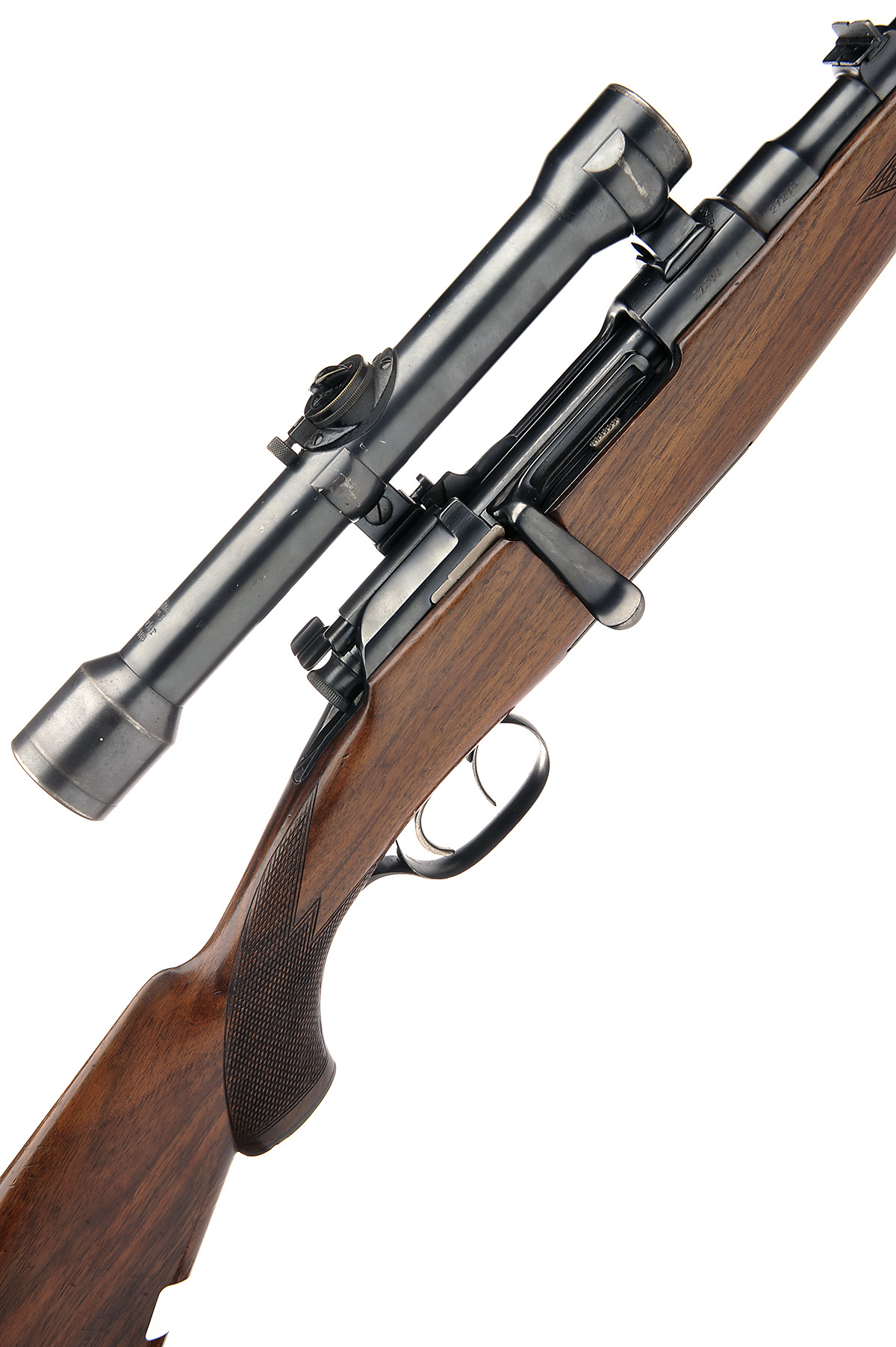 ** GES. STEYR 8X56 MANNLICHER SCHONAUER 'MODEL 1903' BOLT-MAGAZINE STUTZEN SPORTING RIFLE, serial no. 21244, 22 1/4in. nitro barrel, ramp-mounted gold bead fore-sight, leaf rear-sight with 1 x folding, fitted with a Carl Zeiss Jena Zielvier telescopic sight, with quick release claw mounts, manual flag safety, detachable magazine, set triggers, 14in. well-figured full-length pistolgrip stock with cheekpiece, sling swivels