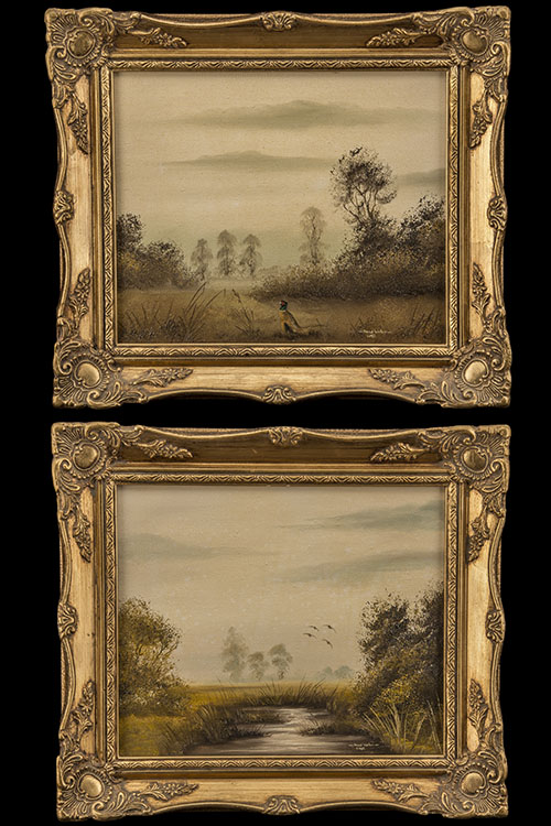 A PAIR OF ORIGINAL OIL ON CANVAS PAINTINGS OF GAME BIRDS AND WILDFOWL IN COUNTRYSIDE SETTINGS,
