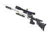 recent, licenced from Carl Walther, with 21 1/4in. barrel including alloy shroud with integral reservoir guard, blacked receiver with oversize ambidextrous cocking piece, composite alloy and abs plastic skeleton stock with ergonomic ambidextrous pistol-grip and adjustable comb, match trigger and isolated fore-end palm-rest, complete with a 'DOWLING' 8-40x44 AO PA mildot telescopic sight and mounts, and its makers? card carton