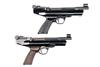 WEBLEY & SCOTT, BIRMINGHAM A COMPOSED PAIR OF LITTLE-USED BOXED AIR-PISTOLS, MODELS TYPHOON & HURRICANE no visible serial numbers,