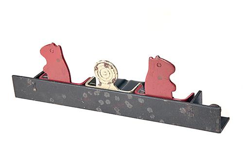 A SCARCE ALL-METAL THREE SILHOUETTE AIR-RIFLE TARGET, UNSIGNED, MODEL 'CROSMAN DO-DO TARGET', with black painted body, twin red squirrel silhouettes with central target shaped reset
