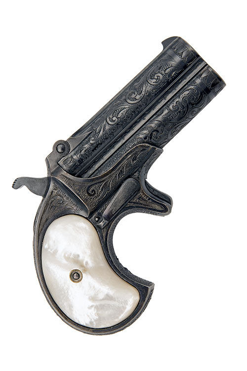 A CASED EXTREMELY FINE .41 (RIMFIRE) OVER-UNDER ENGRAVED DERRINGER PISTOL, serial no. 605,