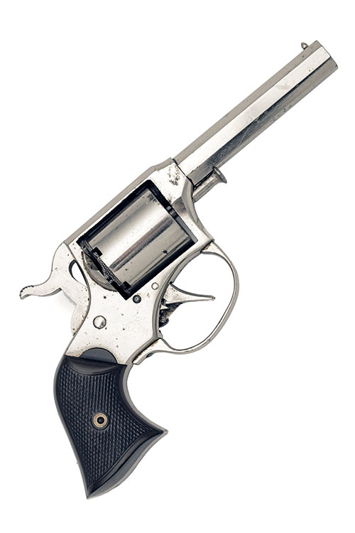 circa 1865 with later factory conversion to rimfire (numbered 7252), with nickel-plated 3 1/8in. octagonal barrel, the top-flat signed 'MANUFACTURED BY REMINGTON ILION N.Y.' over 'RIDER'S PAT AUG 17 1858, MAY 3 1859', plated solid frame with exposed hammer and guarded trigger, plain cylinder with detachable back-plate, capping notch in recoil shield, and chequered gutta-percha grips, the whole retaining virtually all its original plated finish