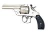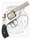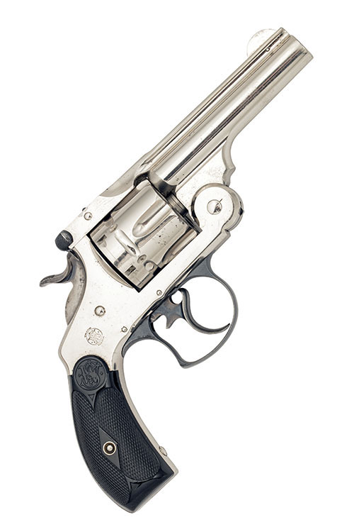 circa 1898, with nickel-plated 4in. barrel, raised sighting-rib signed by the maker and with patent dates to 1880, crescent fore-sight, break-open auto-ejecting frame with blued release catch, fluted cylinder with distinctive double notch locking slots, chequered hard-rubber grips embossed with the 'S&W' trademark, blued trigger-guard, colour-hardened trigger and hammer, the whole remaining in remarkable condition and appearing unfired with storage marks only