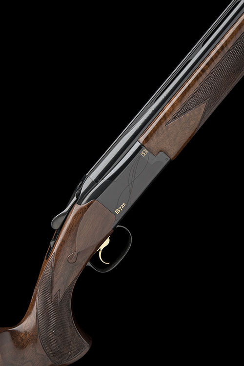 30in. nitro barrels with 10mm ventilated file cut top-rib, ventilated mid-rib, 3in. chambers, extended Invector DS multichokes (with spares), hold-open toplever, manual safety with integral barrel selector switch, adjustable gold-washed trigger (with spare), blacked action with geometric designs and gold-inlaid with the model designation, 15in. well-figured pistolgrip stock with palm swell and including 3/8in. rubber recoil pad, weight 7lb. 11oz., in its universal case with paperwork
