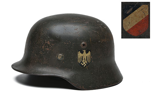 A GOOD DOUBLE-DECAL GERMAN M35 HELMET FOR THE WEHRMACHT,