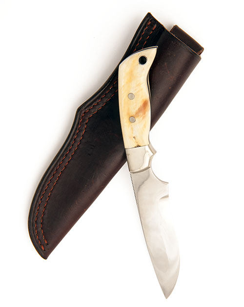 A CUSTOM HANDMADE MASTODON-HANDLED HUNTING-KNIFE, UNSIGNED,