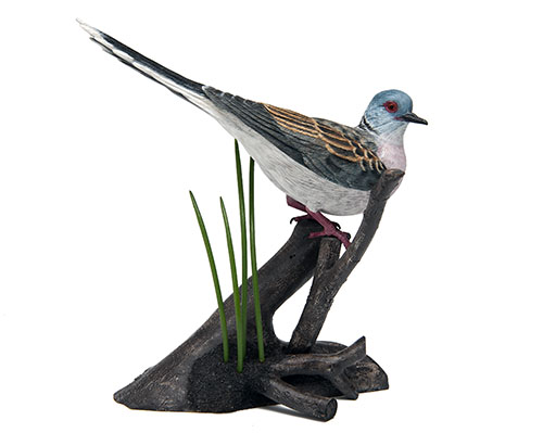 A FINE HAND CARVED AND PAINTED TURTLE DOVE,