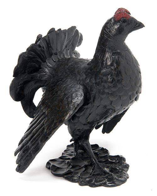 A FINE NEW BRONZE SCULPTURE OF BLACK GROUSE,
