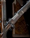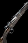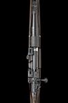 24in. nitro reproved .300 Winchester barrel (in 2017), block-mounted open sights with one folding leaf sight, matted finish with gold-inlaid sight lines and marked for 100 and 200 yards, ramp-mounted bead fore-sight with locking folding protector hood, the knox form engraved with the calibre designation, the sight and sling mounts engraved with celtic knotwork on a matted background;