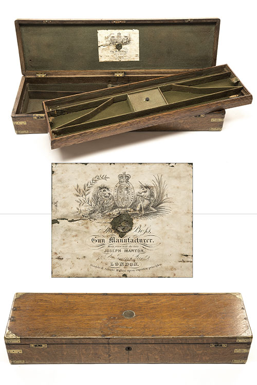 The number "640" appears to have been the only number stamped on the case prior to "1476". The case dates from 1845 and when it was refurbished in 1856, the more up to date Boss label was pasted over the original label. When no. 1476 was put in the case, no 640 was sold back to Boss and it appears that only no. 1476 was resident in the case