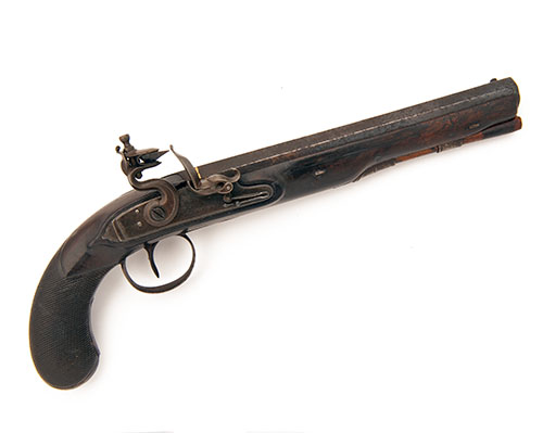 A 22-BORE FLINTLOCK DUELLING-PISTOL, no visible serial number,