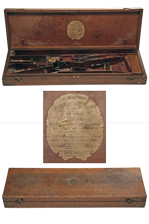 A MID 19TH CENTURY FITTED OAK CASE FOR A DOUBLE-BARRELLED PERCUSSION SHOTGUN WITH ANDREW MALOCH, STERLING LABEL,