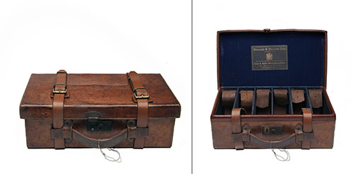 for approx. 300 cartridges, the interior lined with blue baize and blue canvas, brass lock (including key), the lid exterior with 'A.S. HAY'