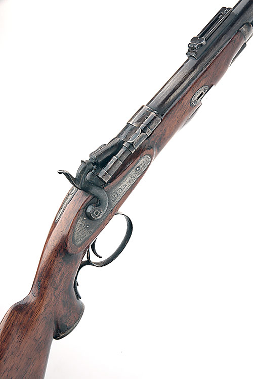 * A .577 (SNIDER) SINGLE-SHOT SPORTING RIFLE SIGNED 'I. HOLLIS & SONS', serial no. A5, adapted from a Snider two-band service rifle, with 25 1/2in. signed and sighted barrel, flip-open breech, scroll engraved and signed lock and amateur re-stock