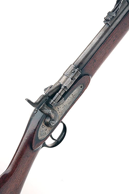 * A .577 (SNIDER) SINGLE-SHOT BREECH-LOADING CARBINE SIGNED TOWER, MODEL ARTILLERY CARBINE TWO-BAND', serial no. 217, dated for 1879, with commercially proved 22 1/2in. barrel, flip-open breech, signed lock and walnut full-stock, complete with jag-ended clearing-rod