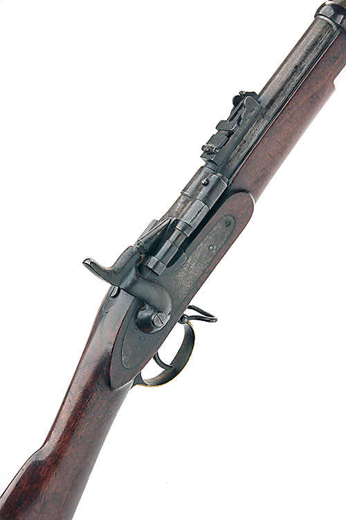 * A .577 (SNIDER) BREECH-LOADING RIFLE SIGNED TOWER, no visible serial number, dated for 1871, with shortened 22 3/4in. barrel, flip-open breech, plain lock, walnut full-stock, brass furniture (missing front iron barrel-band and clearing rod)