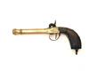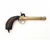 A 25-BORE PERCUSSION CANNON-BARRELLED BRASS OVERCOAT PISTOL, UNSIGNED, no visible serial number,
