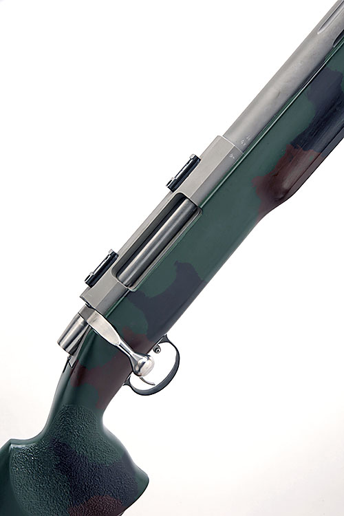 TOOLEY CUSTOM RIFLES .338 NK (.30 BOO BOO) BOLT-ACTION BENCH RIFLE, serial no. B79, 29in unsighted fluted stainless nitro barrel, threaded for sound moderator (together with a 19 1/2in. custom sound moderator) making the barrel length 35in., dovetail scope mounts, 13 3/4in. camouflage synthetic bench stock, together with redding re-loading dies and muzzle flash