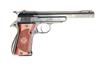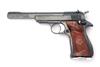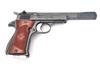 A .22 (L/R) SEMI-AUTOMATIC PISTOL SIGNED STAR, MODEL F SPORT, serial no. 644104, with 6in. exposed slab section barrel (foresight blade missing) with blued finish to barrel (some marking), frame & slide with chequered plastic factory grips