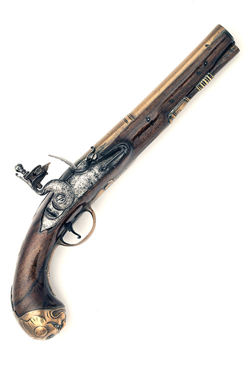 A 22-BORE FLINTLOCK BRASS-BARRELLED SASH-PISTOL SIGNED 'I. AUSTIN', no visible serial number,