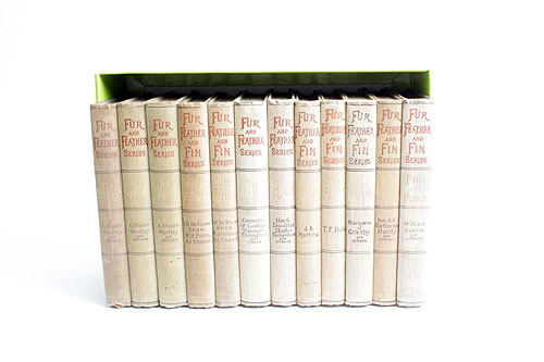 TWELVE VOLUMES OF 'FUR FEATHER AND FIN SERIES', comprising of 'THE PHEASANT', 'THE PARTRIDGE', 'THE GROUSE', 'WILD-FOWL', 'SNIPE AND WOODCOCK', ''THE RED DEER', THE HARE', 'THE RABBIT', 'THE FOX', 'THE TROUT', 'THE SALMON', 'PIKE AND PERCH'