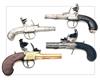 VARIOUS MAKERS A COLLECTION OF FOUR ENGLISH FLINTLOCK TURN-OFF BOXLOCK POCKET-PISTOLS, no visible serial numbers,