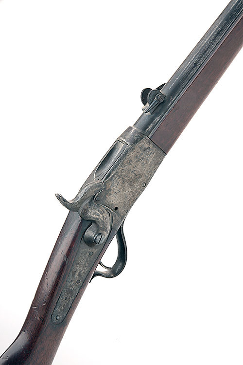 circa 1866, with 32 1/2in. sighted barrel, the action marked 'PEABODY'S PAT. / JULY. 22. 1862, MAN'F'D BY / PROVIDENCE TOOL CO. / PROV. R.I.' on the left side, plain back-action lock, walnut three-quarter stock, iron mounts including two sprung barrel-bands, iron sling mounts, under-barrel cleaning rod, small losses.