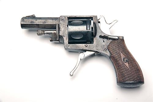 * A .320 (SHORT-REVOLVER) SIX-SHOT POCKET-REVOLVER, UNSIGNED, no visible serial number, circa 1880, with octagonal 2 1/8in. barrel, solid frame, blind fluted cylinder and chequered walnut butt