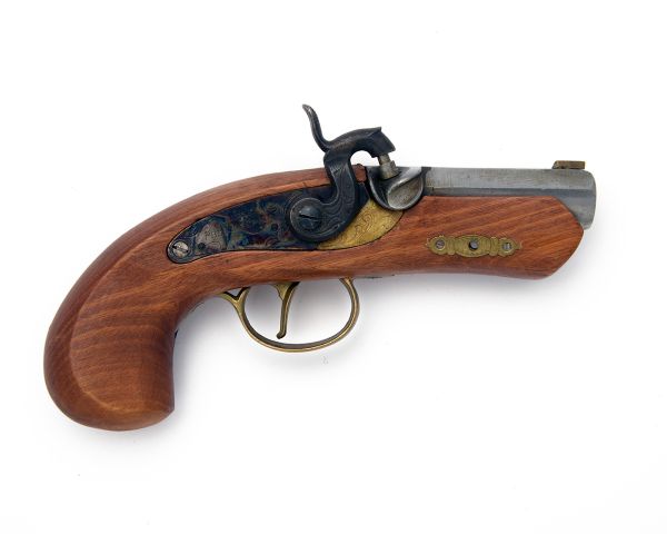 A REPRODUCTION .45 PERCUSSION PISTOL SIGNED DIKAR, MODEL PHILADELPHIA DERRINGER, serial no. 004491,