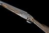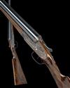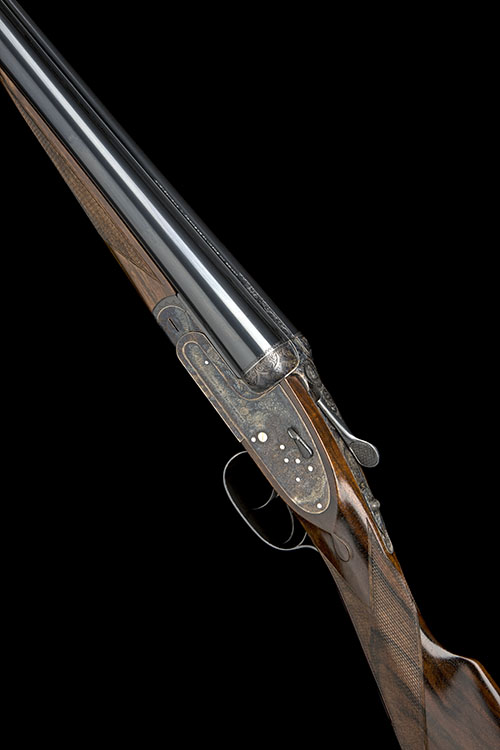 28in. nitro chopperlump barrels, the rib engraved with the makers name, 2 3/4in. chambers, bored approx. imp. cyl. and 1/4 choke, removable striker discs, automatic safety with gold-inlaid 'S' detail, hand-detachable sidelocks, gold-inlaid cocking-indicators, rolled-edge triggerguard, articulated front trigger, border and acanthus scroll engraving, retaining virtually full original colour-hardening and finish, 14 3/4in. figured stock, weight 7lb.