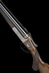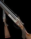 30in. Greener trade mark nitro barrels, broad raised matt rib with banner engraved 'W. W. GREENER, MAKER. 40. PALL MALL. LONDON. WORKS. BIRMINGHAM', fluted at the breech end and engraved with a Blue Rock pigeon, the breech ends of the barrels engraved with bands and acanthus ornamentation, 2 3/4in. chambers, bored approx. 1/2 and 3/4 choke, treble-grip action with flat matt top standing breech, Southgate ejectors, manual side-safety with gold-inlaid 'SAFE' detail, bold floral and acanthus scroll engraving, the makers name in a scrolling banner, 15 1/4in. figured pistolgrip stock (cracked at hand) with horn pistolgrip-cap and including 1 1/4in. rubber recoil pad, fore-end with Deeley & Edge patent release catch and horn finial, weight 7lb. 15oz., in its lightweight canvas and leather case with some accessories and gold-tooled red leather trade label